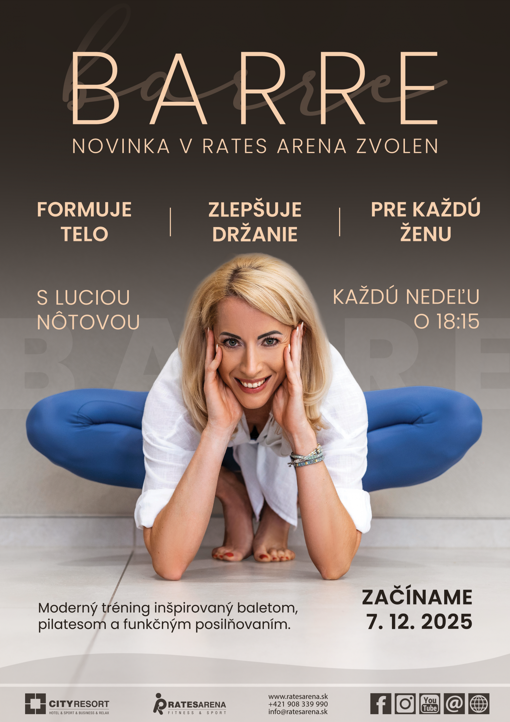 » BARRE je moderný tréning inšpirovaný baletom, pilatesom, funkčným posilňovaním a strečingom.