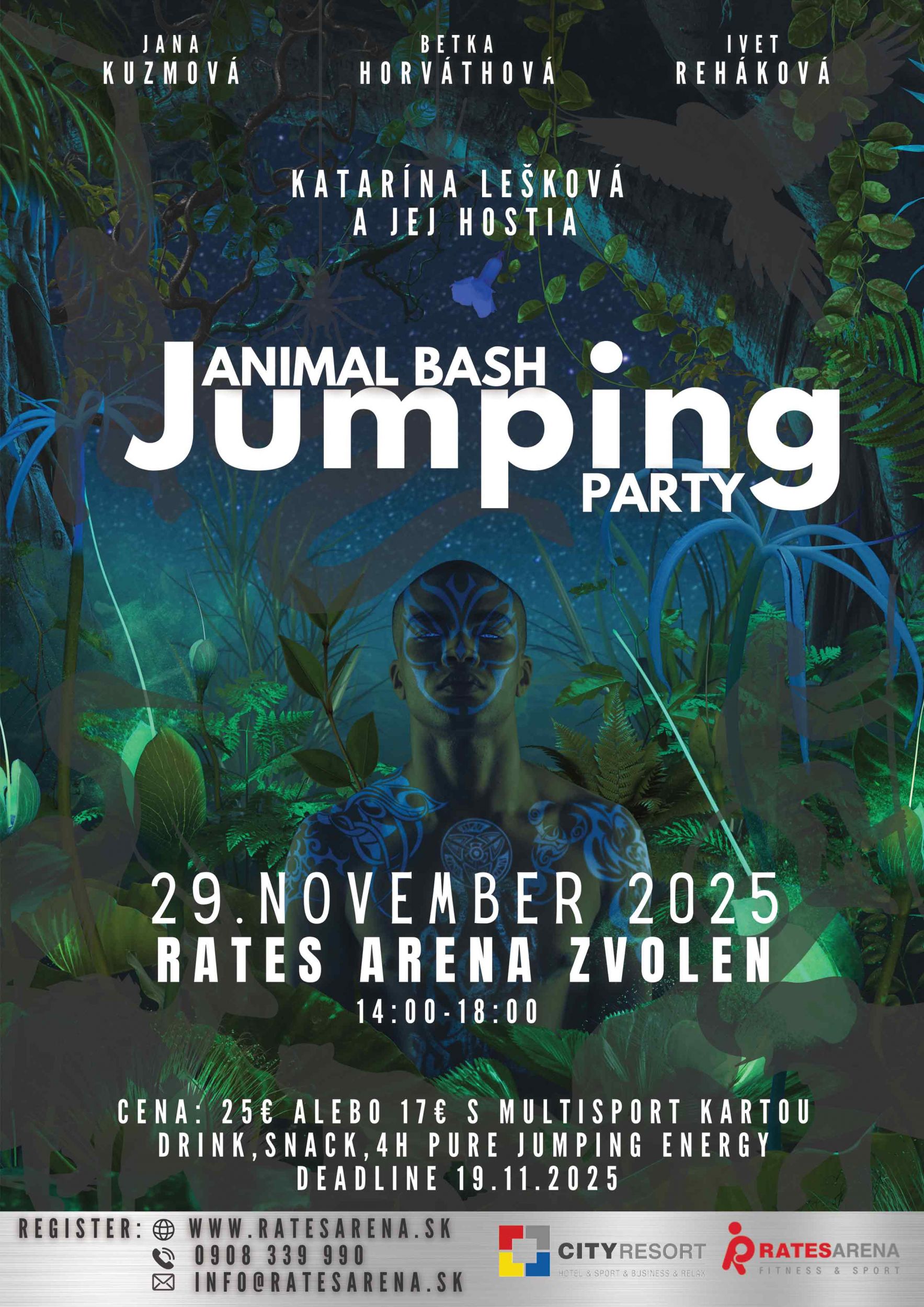 Naša jesenná jumping párty prichádza v štýle ANIMAL BASH – príď v zvieracej nálade, či rovno v kostýme a vyskáč zo seba všetok stres aj kalórie.